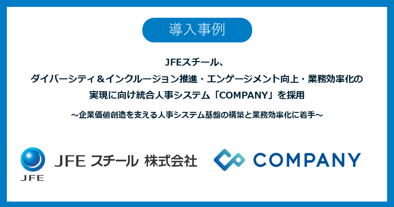 JFEスチール、ダイバーシティ&インクルージョン推進・エンゲージメント向上・業務効率化の実現に向け統合人事システム「COMPANY」を採用