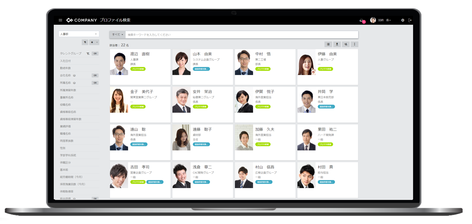 これらのニーズを踏まえた上で複数の製品を比較検討した結果、「COMPANY」を採用しました。決め手となったのは、従来のシステムが基本的に人事部門のメンバーが使うためのシステムだったのに対し、「COMPANY」では柔軟な権限設定により広く社員に活用してもらえるというメリットです。