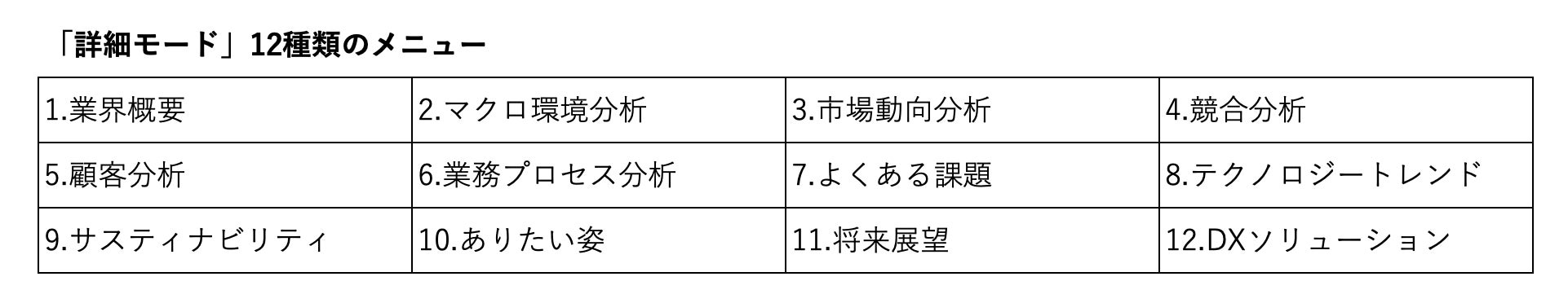 これにより、DX提案の深掘り分析を求める方から、簡潔で即応性の高いレポート作成を必要とする方まで、幅広いニーズにさらに的確に応えることが可能になりました。