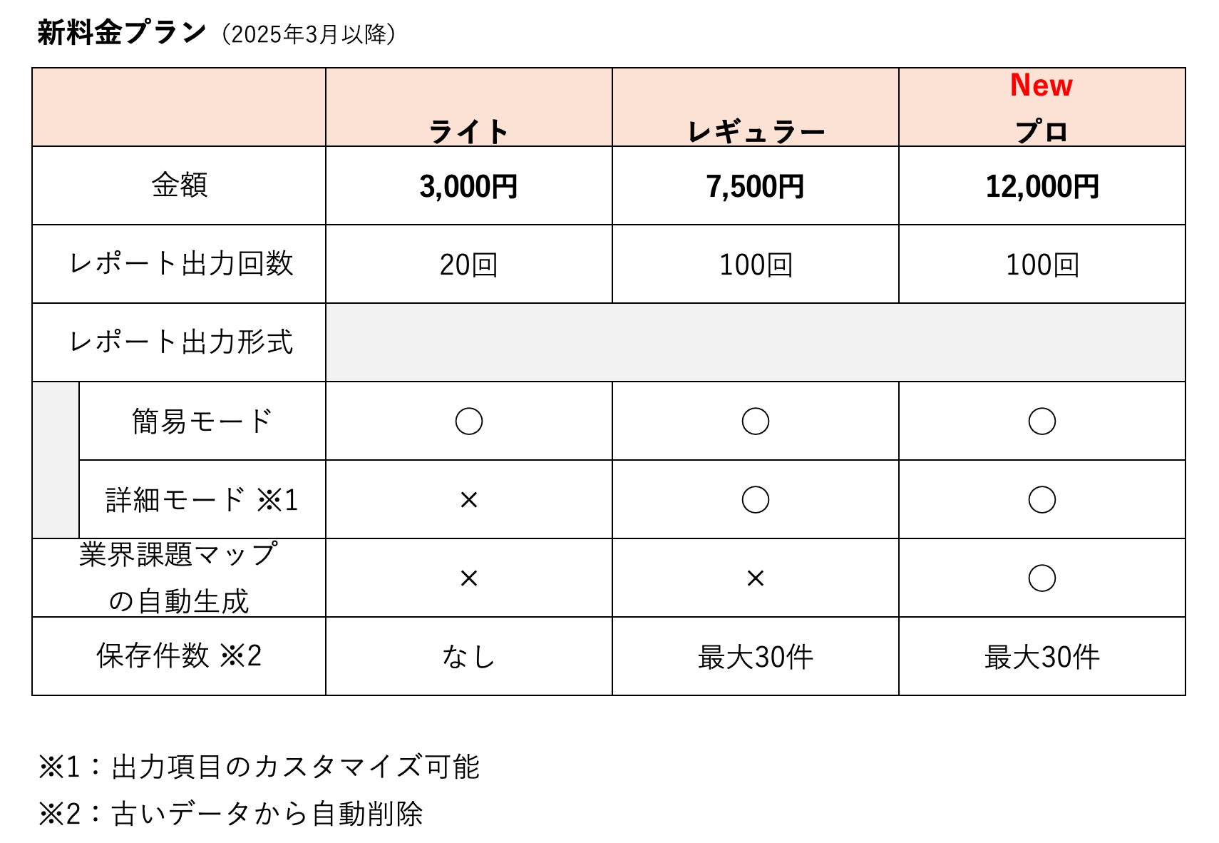今回の大幅アップデートを機に、従来の料金プランである、ライト / レギュラーの2種類から、用途に合わせて選べるライト / レギュラー / プロの3種類になりました。