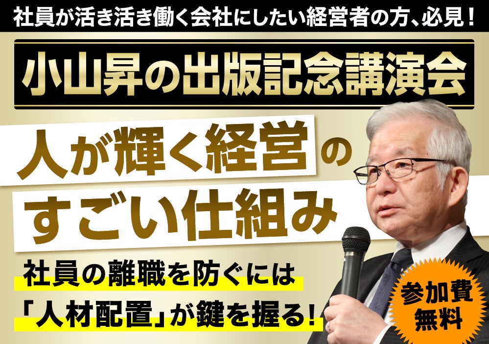 そして今回、この『人が輝く経営のすごい仕組み』の出版を記念して、小山が登壇する無料の講演会が開催決定。詳細は下記の通りである。