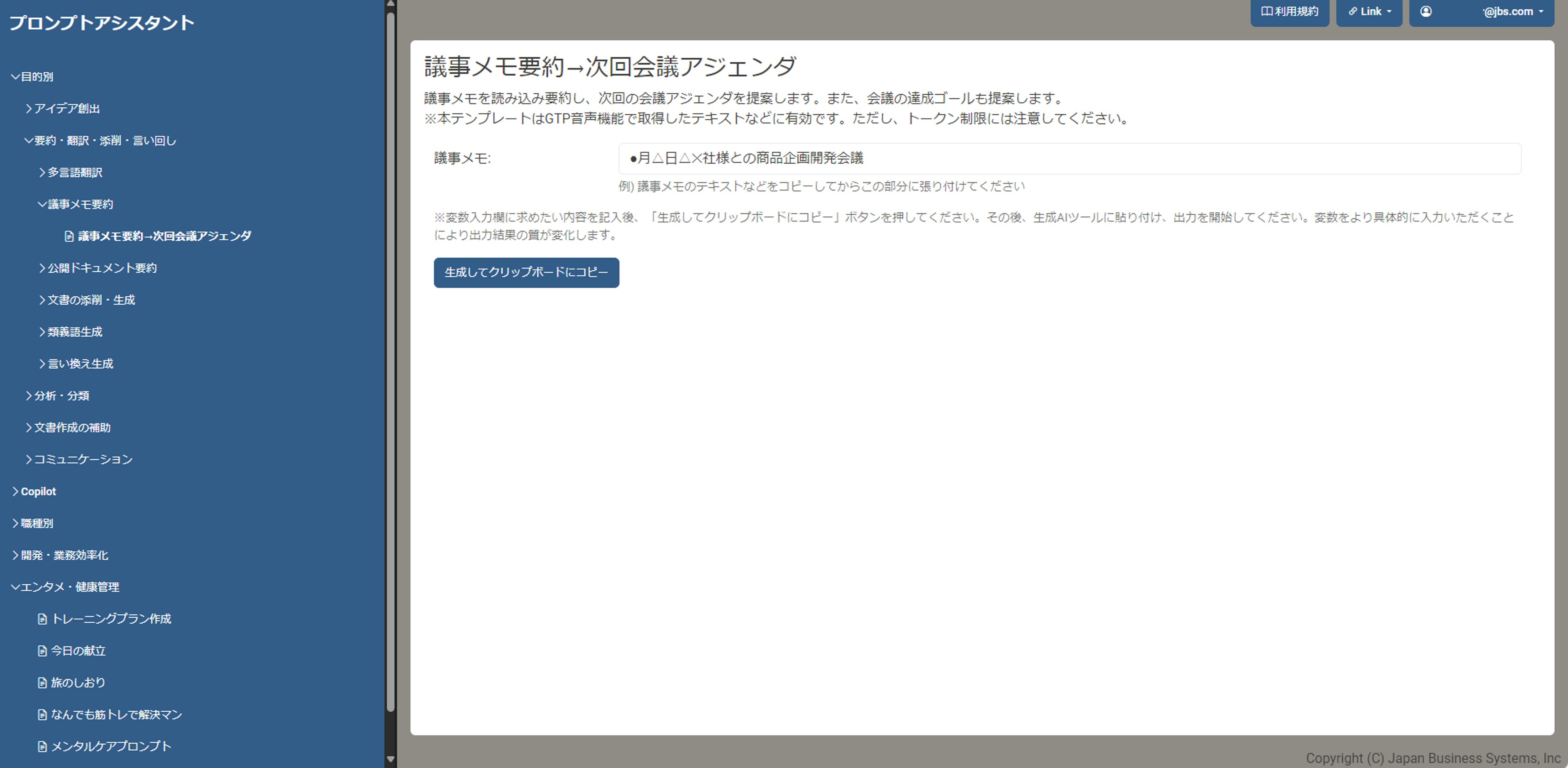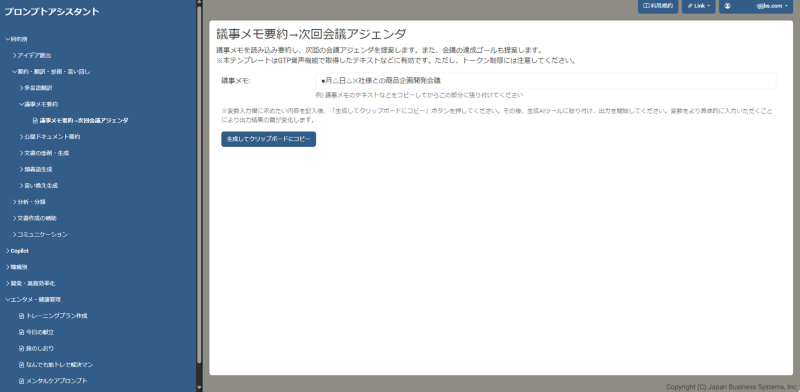 生成 AI プロンプトアシスタント :https://www.jbs.co.jp/solution/generativeaipromptassistant