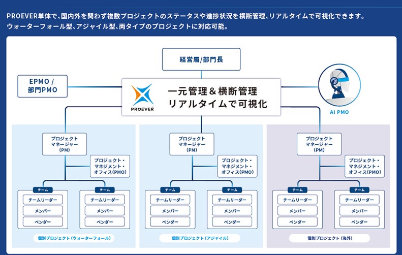 複数プロジェクトを横断して状況を可視化し、プロジェクト管理の標準化と意思決定の迅速化を支援することで、組織としてのプロジェクト遂行力向上に貢献します。