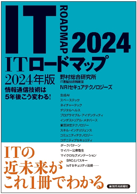 NRIセキュアテクノロジーズ株式会社(以下、NRIセキュア)は、IT(情報技術)の最新動向と未来予測を解説した書籍「ITロードマップ 2024年版(以下、本書)」を、野村総合研究所と共同で執筆しました。本書は2024年版で19冊目となります。本日より、全国およびオンラインの書店等で販売されます。