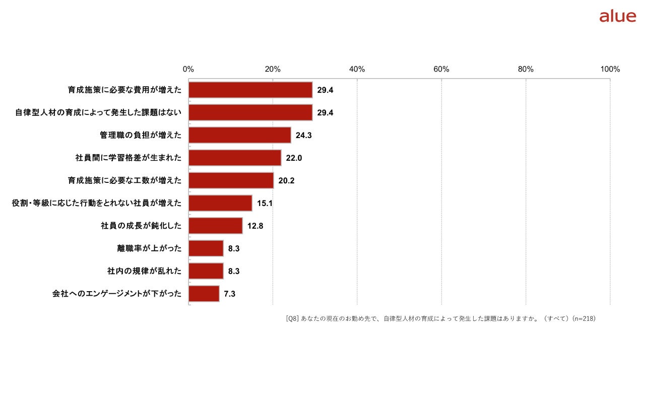 ・「育成施策に必要な費用が増えた」と「発生した課題はない」の回答が最も多く、29.4%