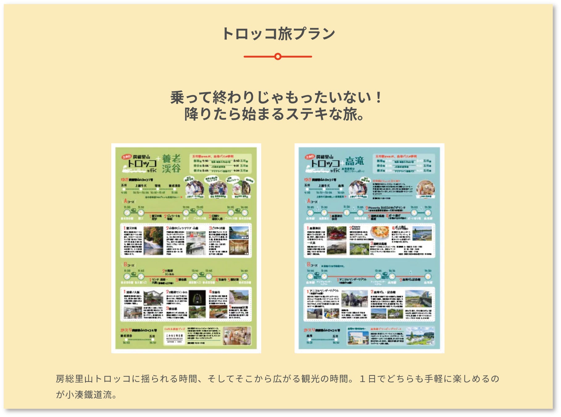 観光列車として人気の「房総里山トロッコ」専用ページでは、トロッコの様々な楽しみ方をご覧いただける「イチオシ旅プラン」「チョイ乗り」のご紹介や、沿線の散策マップなどをご覧いただけます。Web上で指定券の予約ができる専用サイトへの導線もあり、旅行前の事前準備にも十二分にご活用いただけるページへと生まれ変わっています。