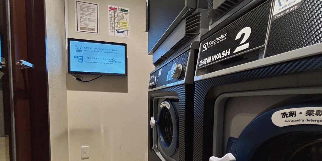 多言語表示とキャッシュレス決済でインバウンドゲストも安心、洗剤を使わない洗濯でSDGsを促進する最新式ホテルランドリー