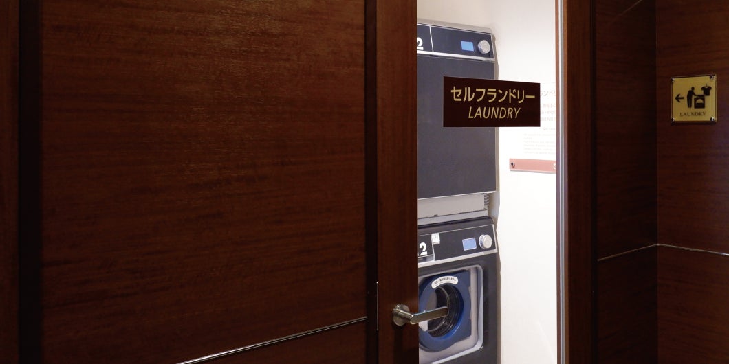 フロントと同じ階の奥まった静かな場所にランドリールームがあり、ランドリー機器を2台設置。