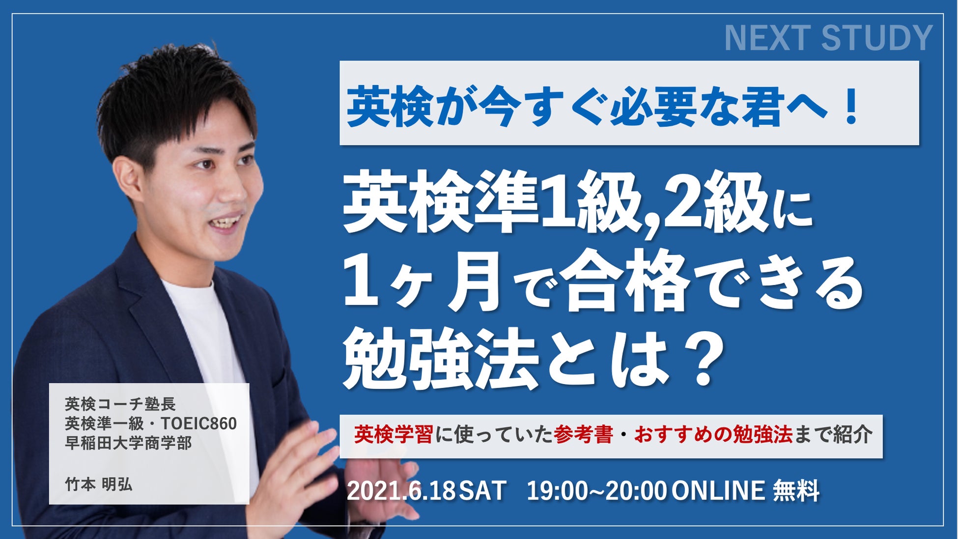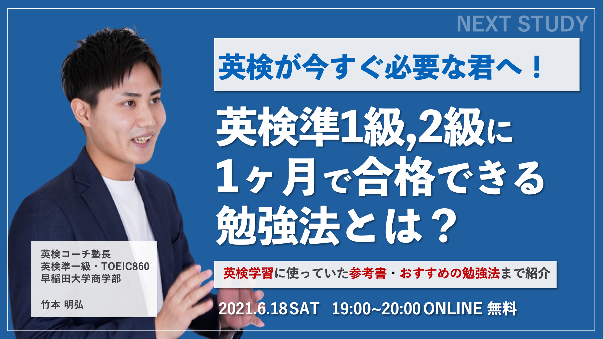 【受験生向け】英検が今すぐ必要なキミへ!英検準一級,二級に最短で合格する勉強法教えちゃいます! 6/18に無料オンライン説明会を開催
