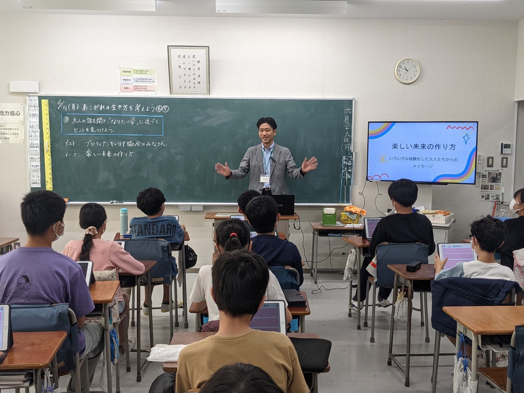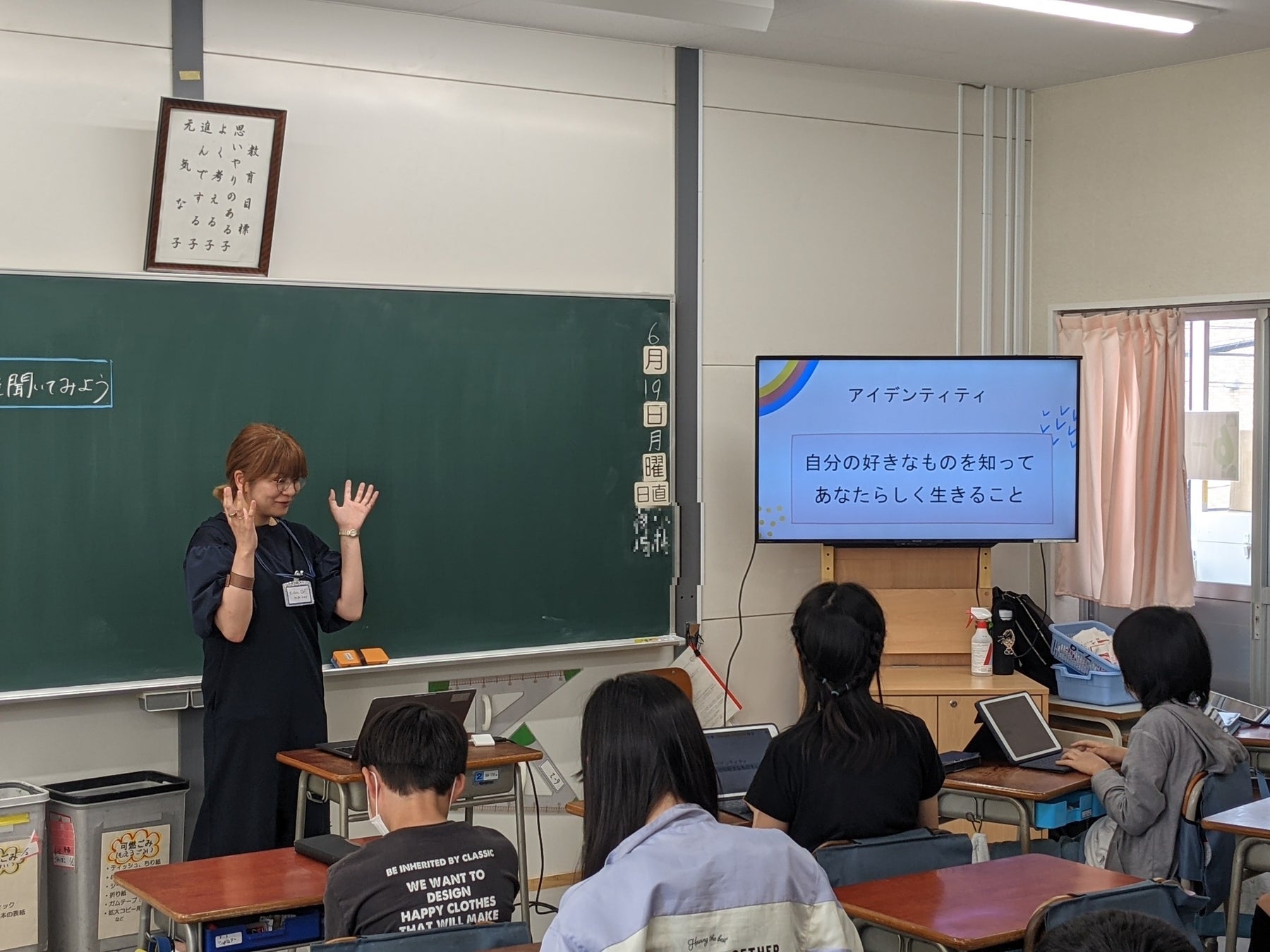授業は2023年6月19日と26日の計2日間、6年生4クラスに2コマずつ授業を実施し、約140名の生徒のみなさん一人一人と講義や座談会を通してじっくり語り合ってきました。