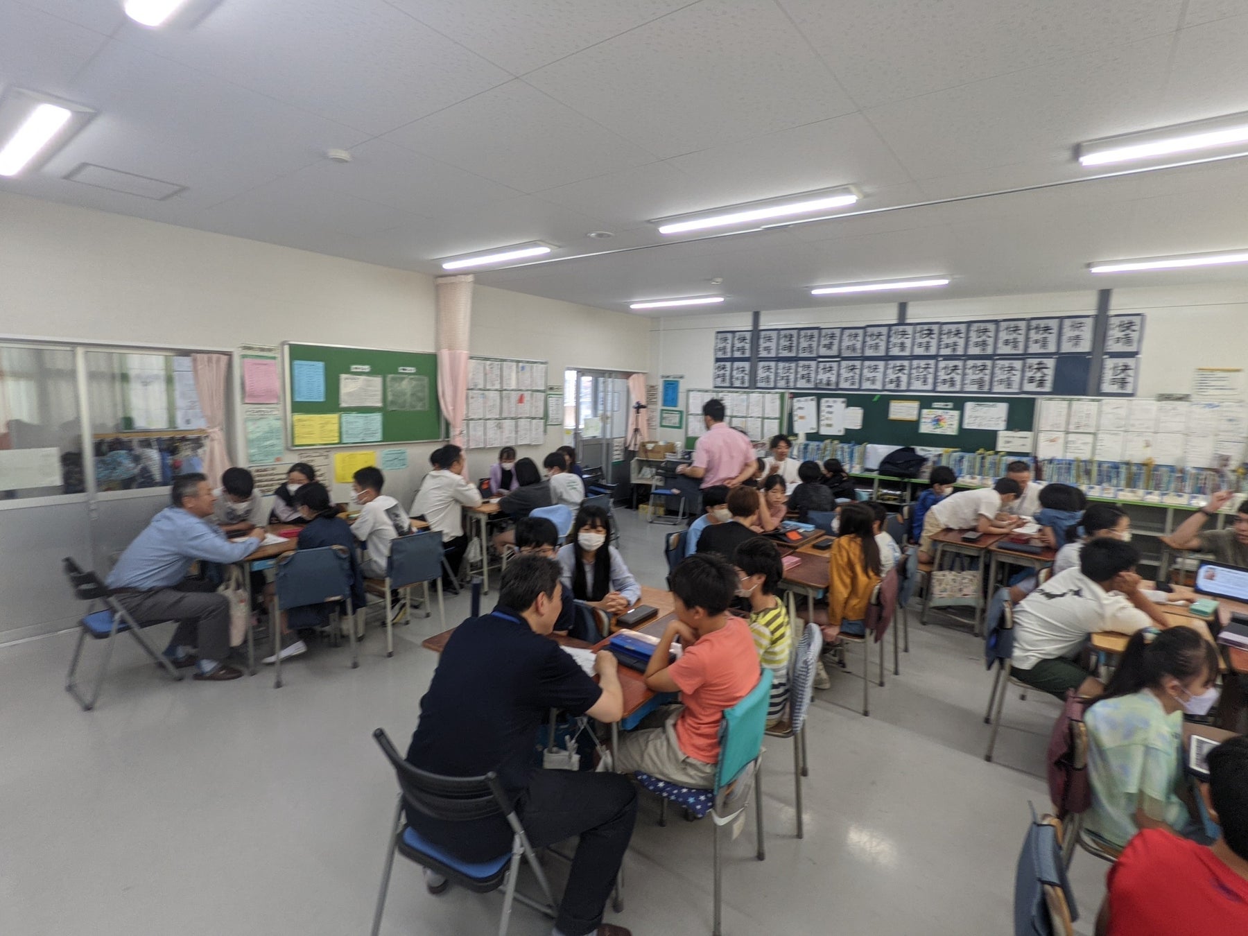 ライフラインチャートを用いて今まで失敗をしてきた大人たちとの座談会を実施。大人たちが各班をまわりながら一人一人のキャリアストーリーや失敗の意味付け、これから目指したいこと等を児童のみなさんと共有。数多くの質問が飛び交い、働くということ、人生についてなど、各班自由に、そして活発に語り合う姿が見られました。