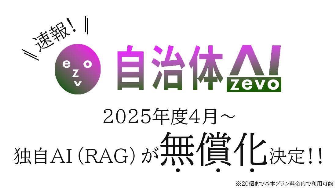 自治体AI zevoの独自AI機能(RAG機能)を令和7年度より無償化(有償オプション→基本プランへ内包)へ