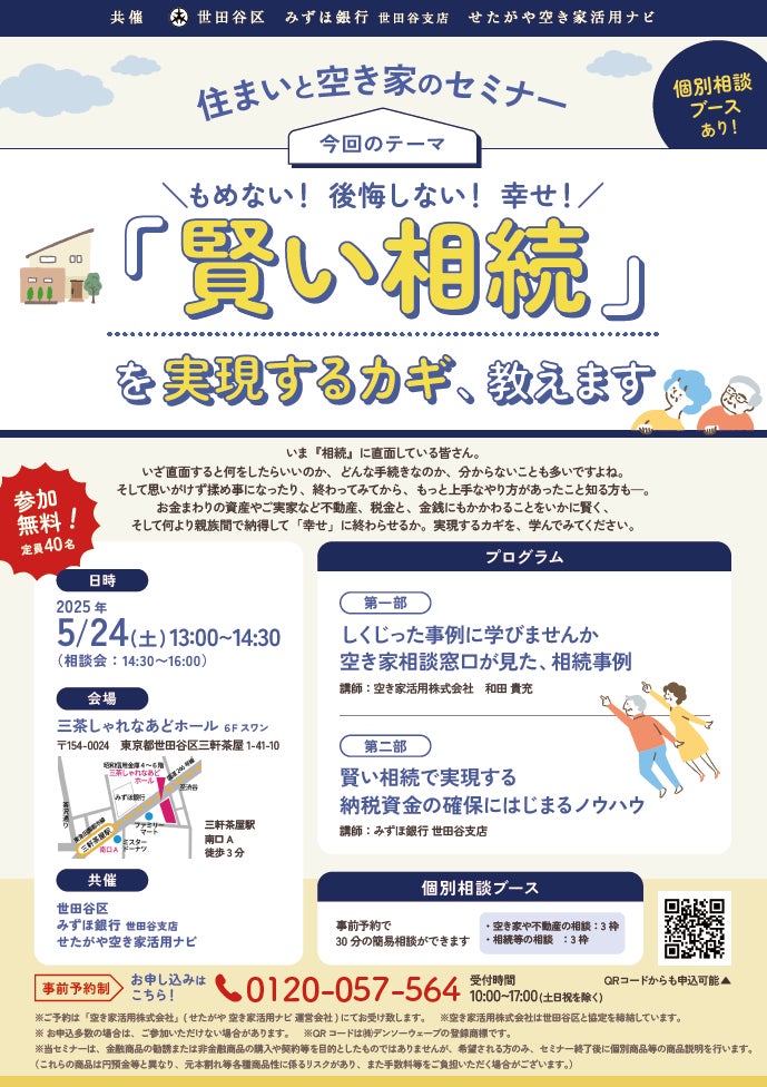 【参加無料】世田谷区主催!実家じまいを考えるための「賢い相続」を実現するカギ、教えます。住まいと空き家のセミナー|5/24(土)