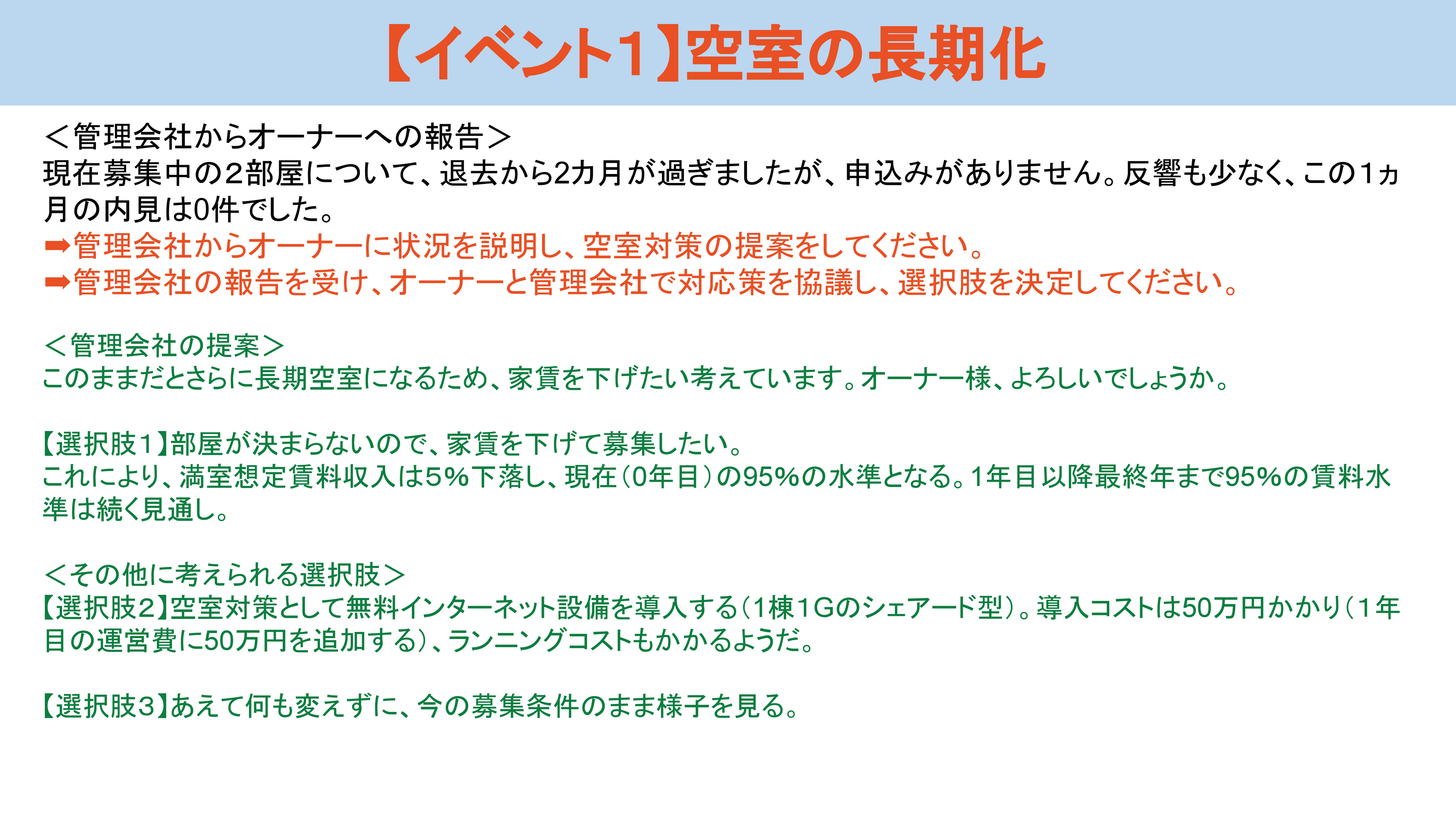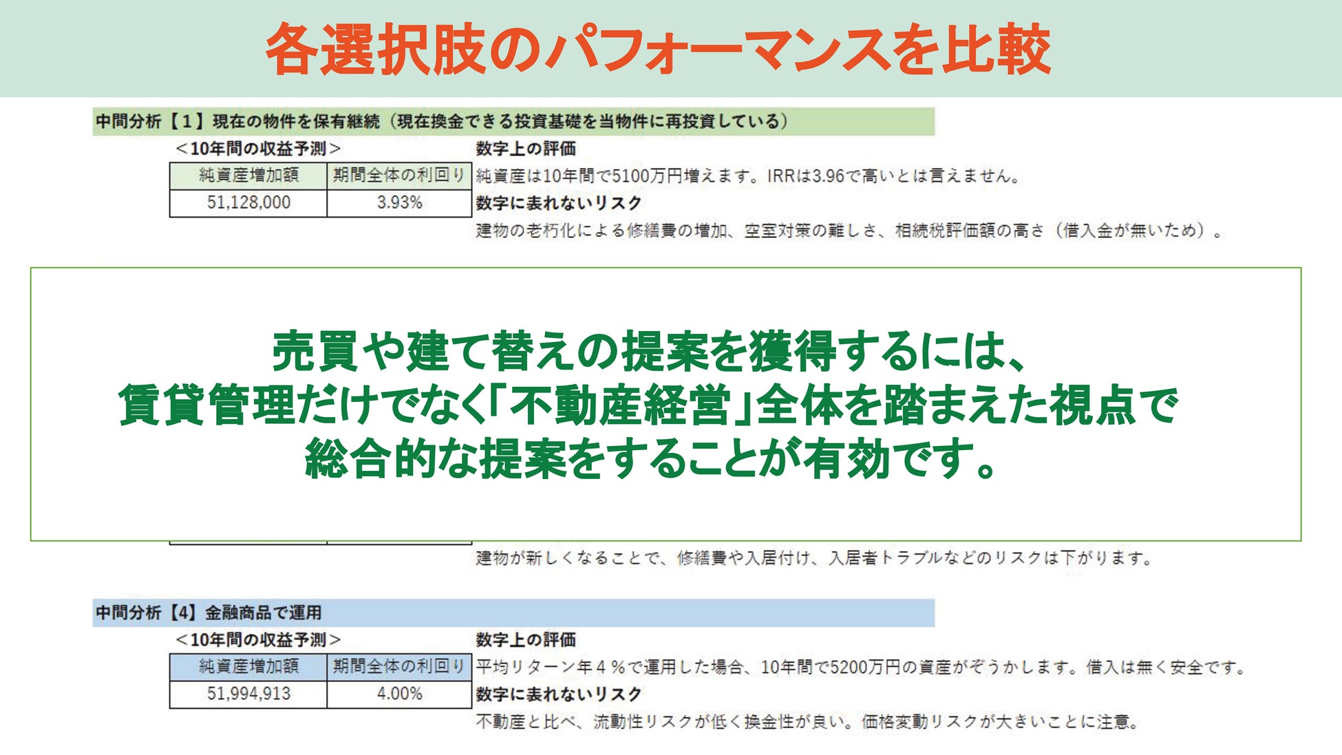 こうした状況を背景に、オーナー様は管理会社に単なる「管理代行」ではなく、収益改善や資産価値の長期的な向上につながる提案、将来を見据えた資産運用・承継に関する助言など、経営課題全体への提案力を求めています。
