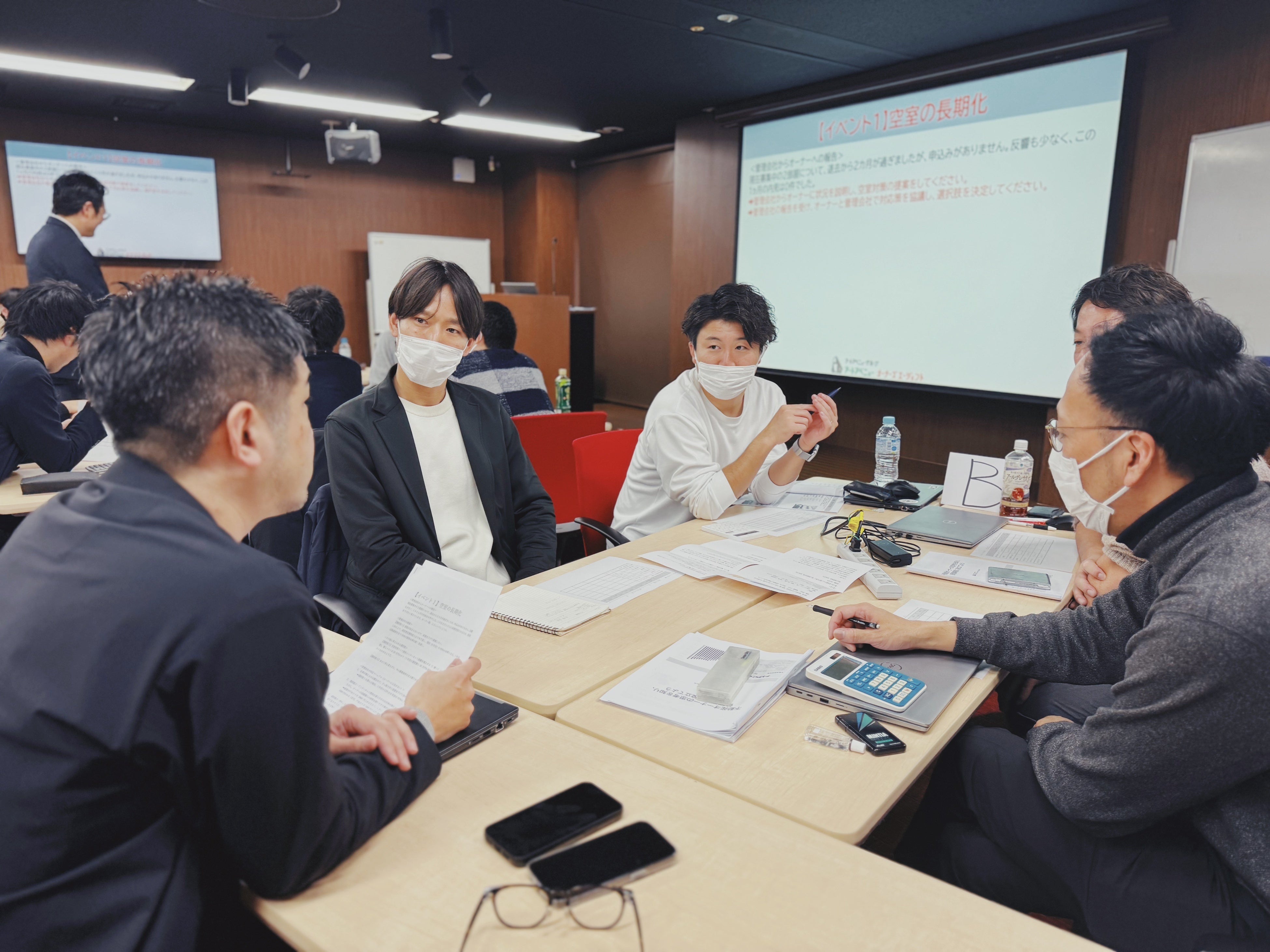 前回の第1回PM研修は「知識+演習ワーク」で構成され、テーマは「プロパティマネジメントとは何か」を根本から学び直す内容。演習ワークでは投資効果・投資分析・キャッシュフロー理解としての計算問題を中心に実施しました。