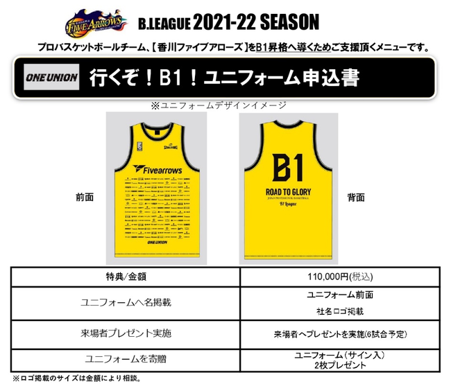 記念すべきB1昇格を決めるユニフォームに、皆さまの企業ロゴやお名前を入れてみませんか?