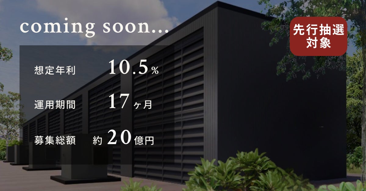 想定年利10.5%、運用期間17ヶ月の高利回りファンドで、一部先行抽選を実施します。