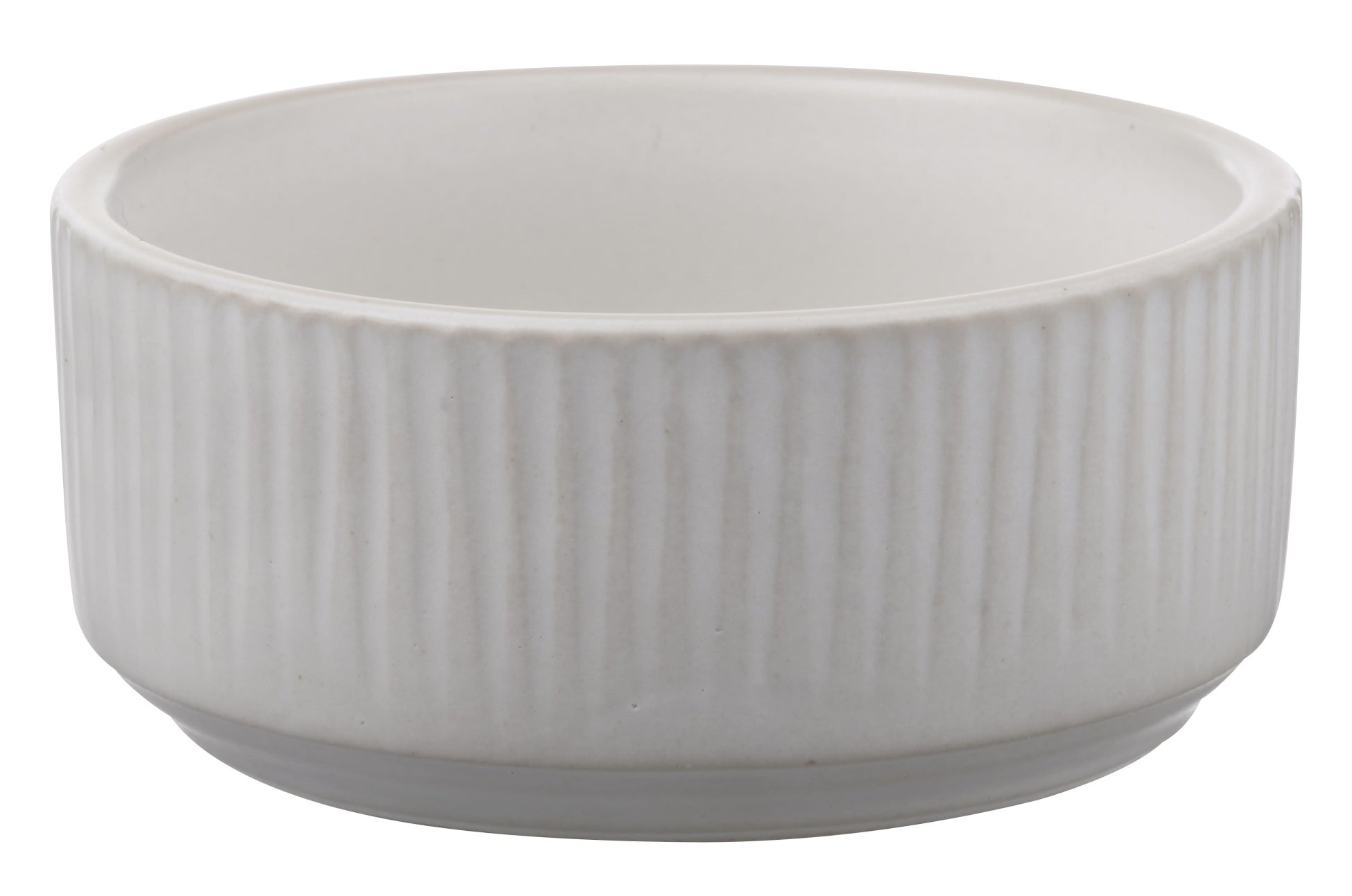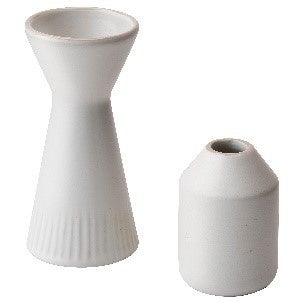 キャンドルは、心身で感じられるぬくもりのある落ち着いた雰囲気を演出します。おそろいのボウルや花瓶セットと同じく、釉薬(ゆうやく)を施したせっ器製で装飾的な溝がデザインされたキャンドルホルダーです。