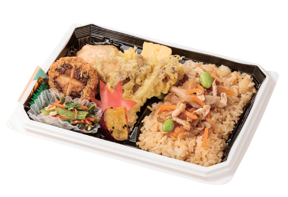 9月に入って涼しい日も増え、そろそろ秋の味覚が楽しい季節。9月から秋の味覚満載の新商品が発売となりました。風味豊かな国産舞茸を炊き込んだご飯に、舞茸天ぷらと大学芋、椎茸海鮮フライといった秋らしいおかずが入ったお弁当です。秋の訪れを食べ物から楽しんでみてはいかがでしょうか。