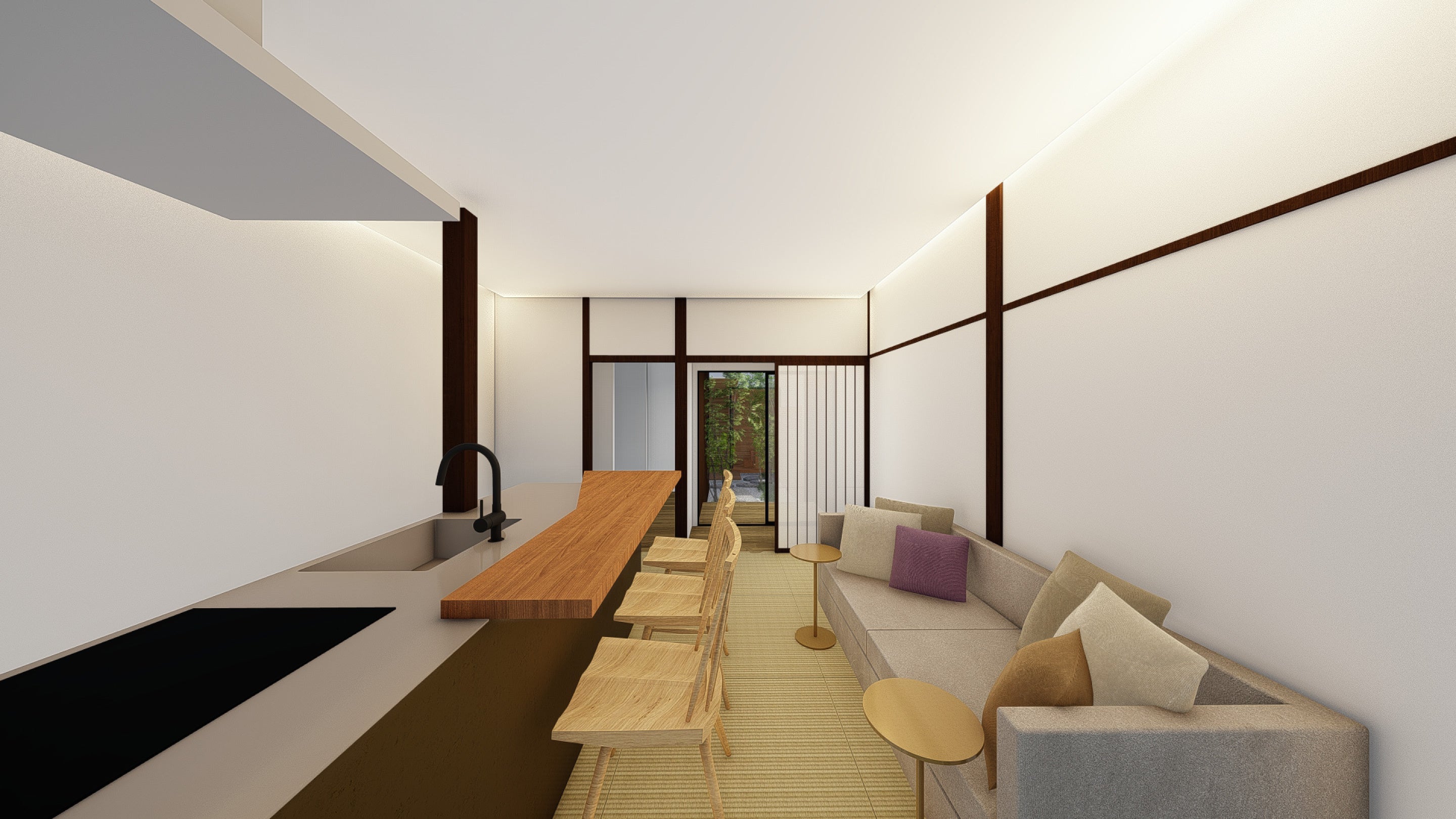 歴史ある金沢町家の空間に、プライベートサウナをはじめとした現代的な滞在価値を取り入れ、文化体験と快適性を両立した一棟貸しヴィラとして設計しました。