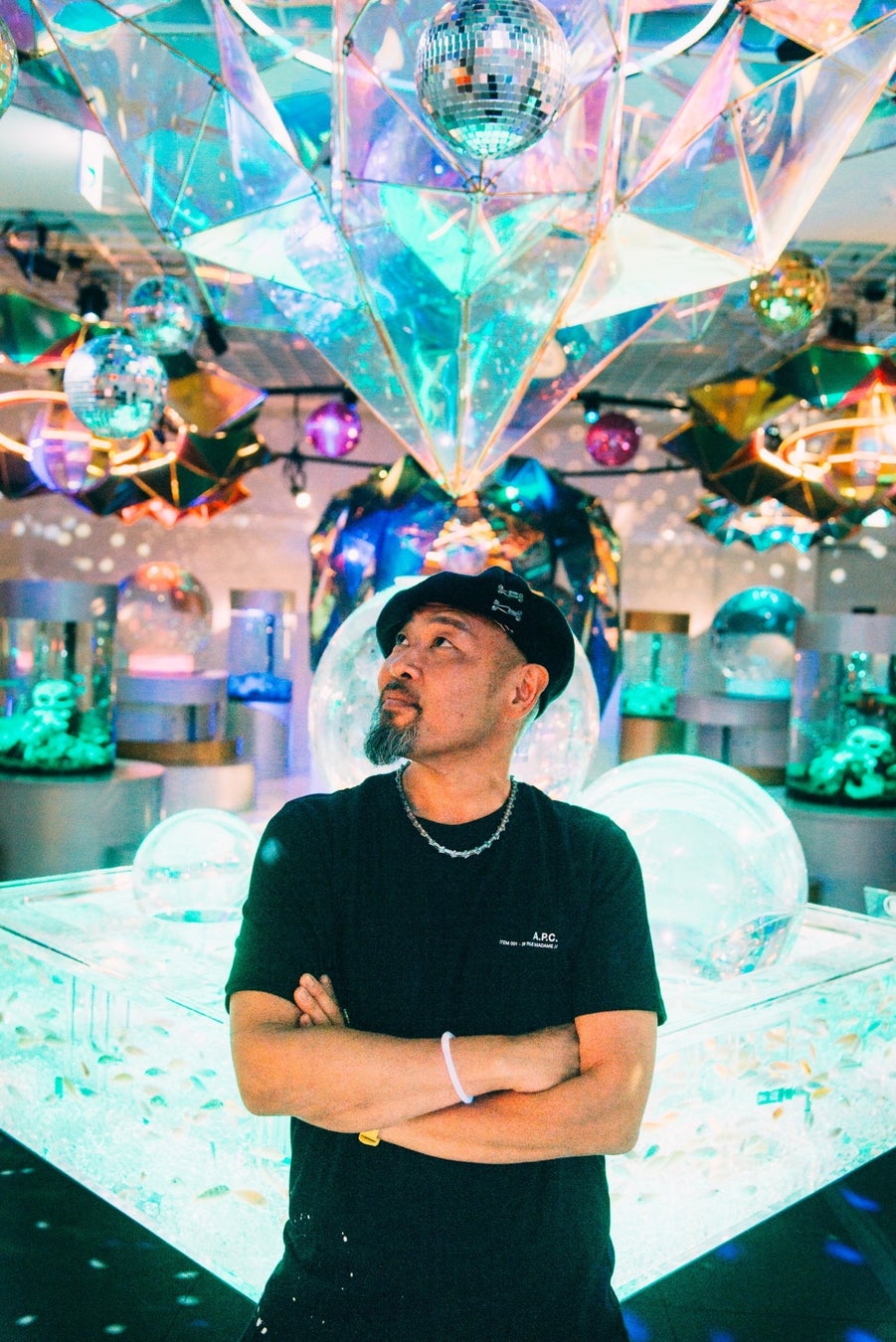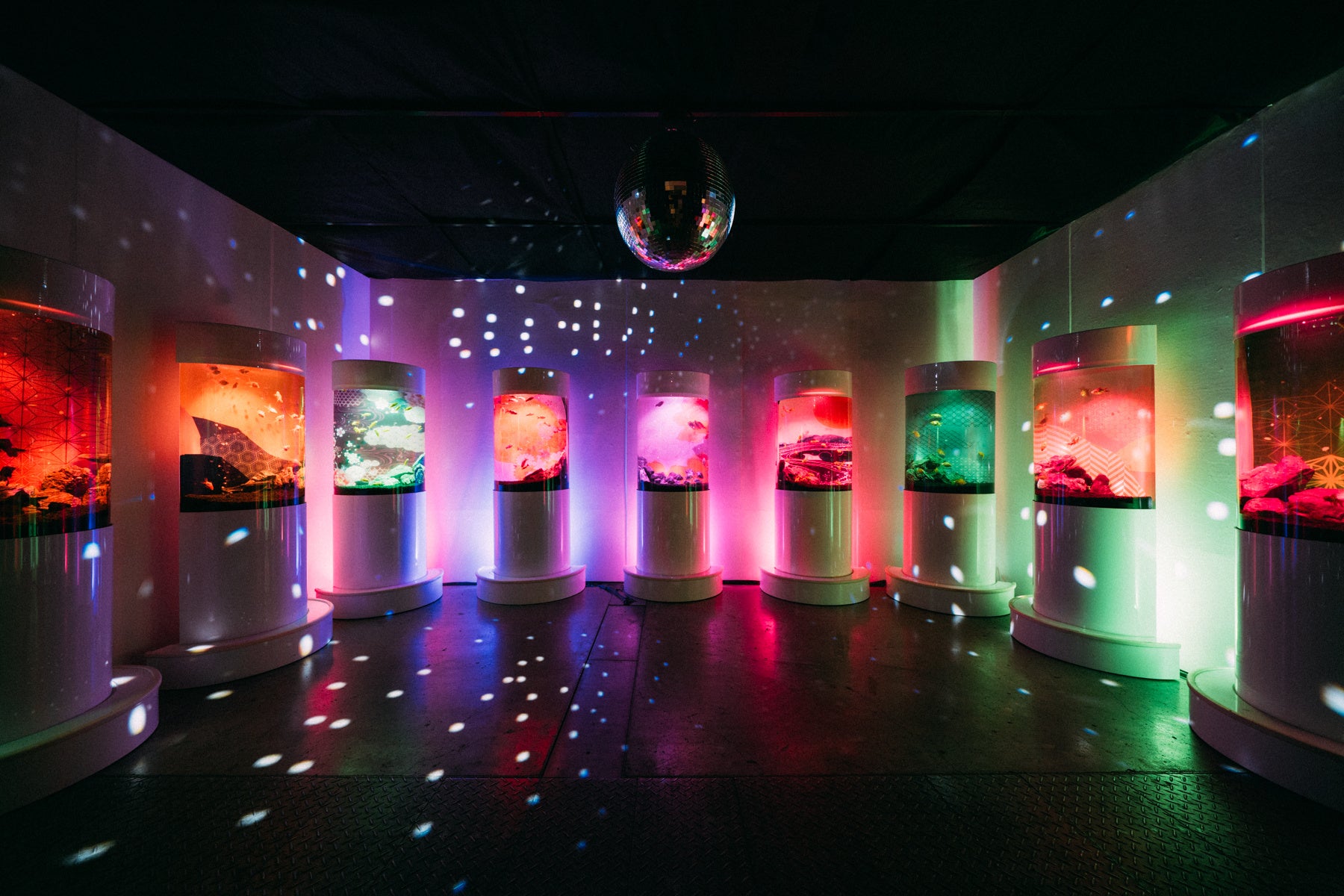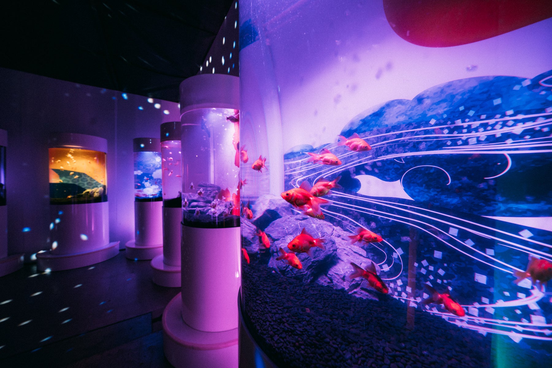 ミラーボールの輝きと金魚の鱗の輝き。新しい現代の金魚の愛で方が体感出来ます。