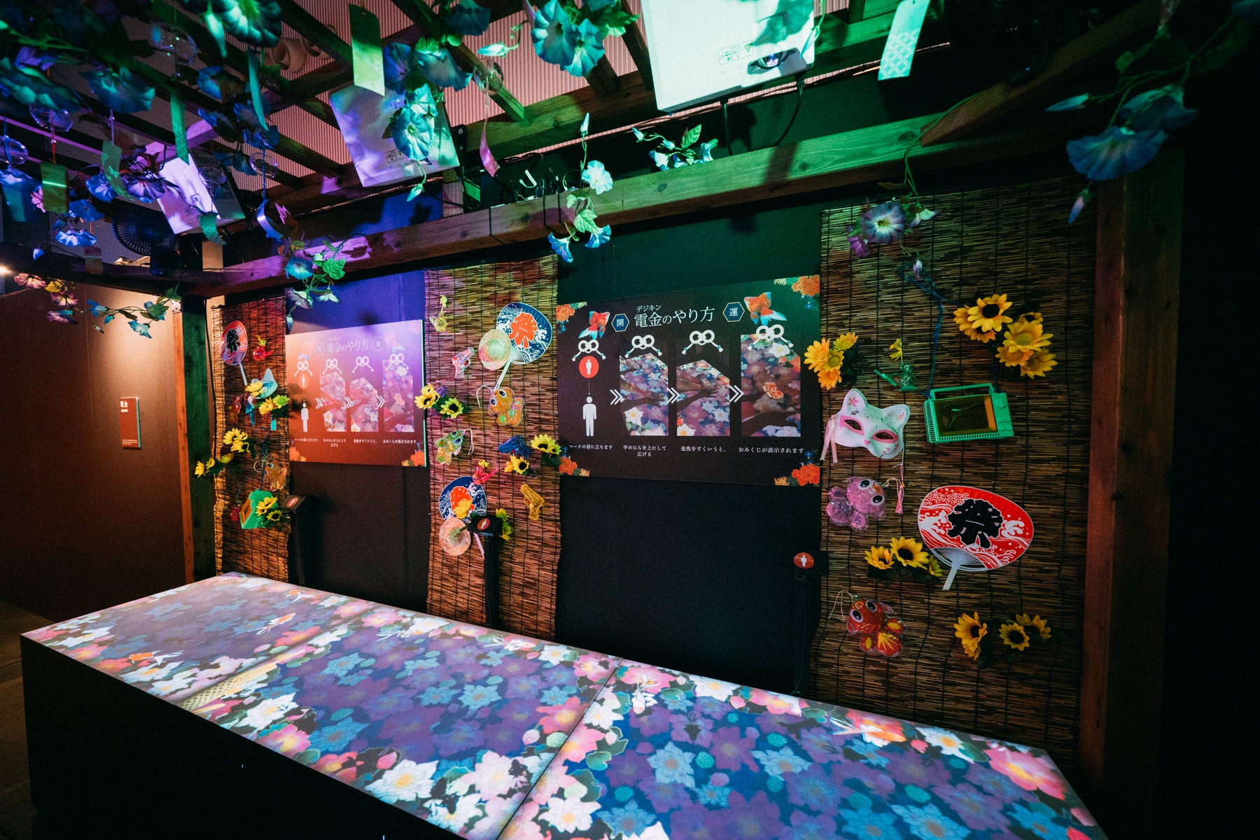 プロジェクションマッピングを応用しデジタル金魚すくいとおみくじを組み合わせた体験ができます。上手にすくって大吉にチャレンジしてみてください。