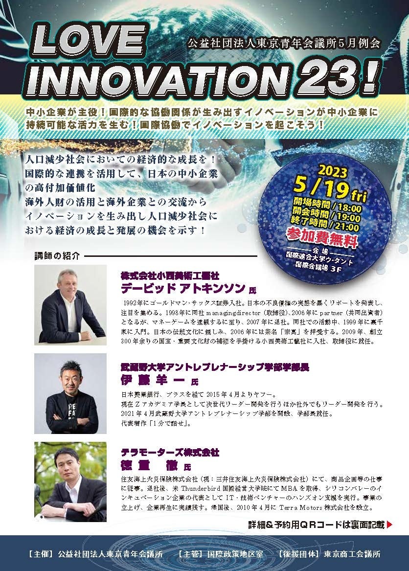 #国際連携 により #オープンイノベーション の構築を目指す!「LOVE INNOVATION 23!」【5月19日(金)19時~最寄駅:渋谷駅、表参道駅】