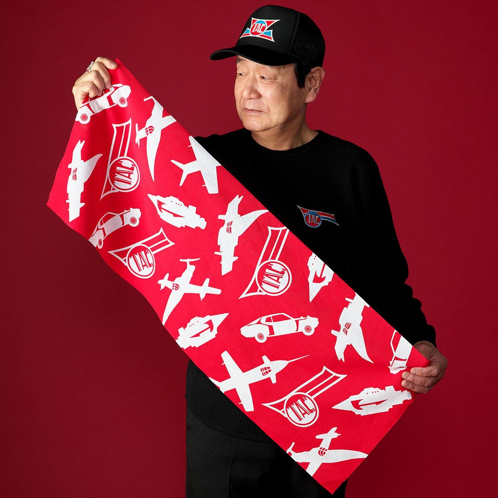 TACのメカニックシルエットが総柄でデザインされた手ぬぐい。