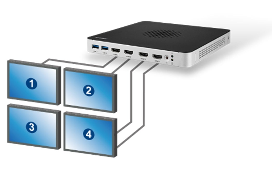 本製品は、最新のインテル Arc™グラフィックスを内蔵し、8Kおよび4K解像度のコンテンツを再生・表示します。また、カメラなどの映像入力用にUSB 3.0、デバイス接続用にRS-232端子、ストリーミングコンテンツ用に2.5Gb LANポートを備えており、さまざまなコンテンツ管理システム(CMS)とのシームレスに統合できることから、デジタルサイネージ環境をすぐに構築できます。