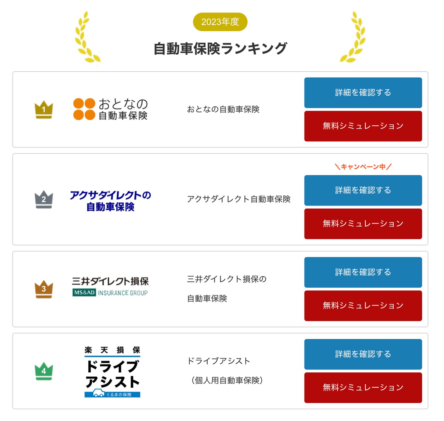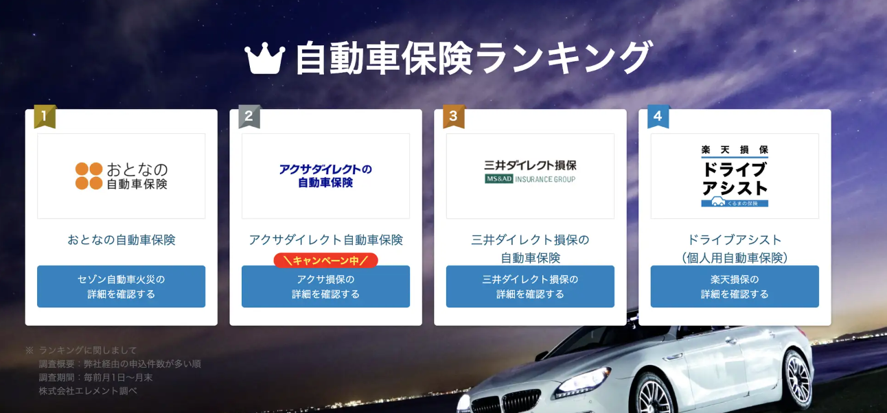 【2023年最新】自動車保険おすすめ人気ランキングTOP4: https://car-h.info/