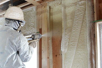発泡ウレタンフォームは、高い断熱性と気密性で、複雑な構造の住宅でも吹き付けて発泡させるので、隙間なく施工ができます。
