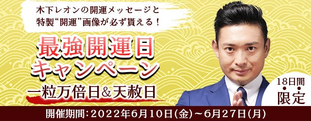 株式会社レンサ(本社:東京都港区、代表取締役:武井哲也)は、2022年6月10日(金)より、運営する公式占いサイト『木下レオンの占い』にて、「最強開運日キャンペーン」の提供を開始いたしました。