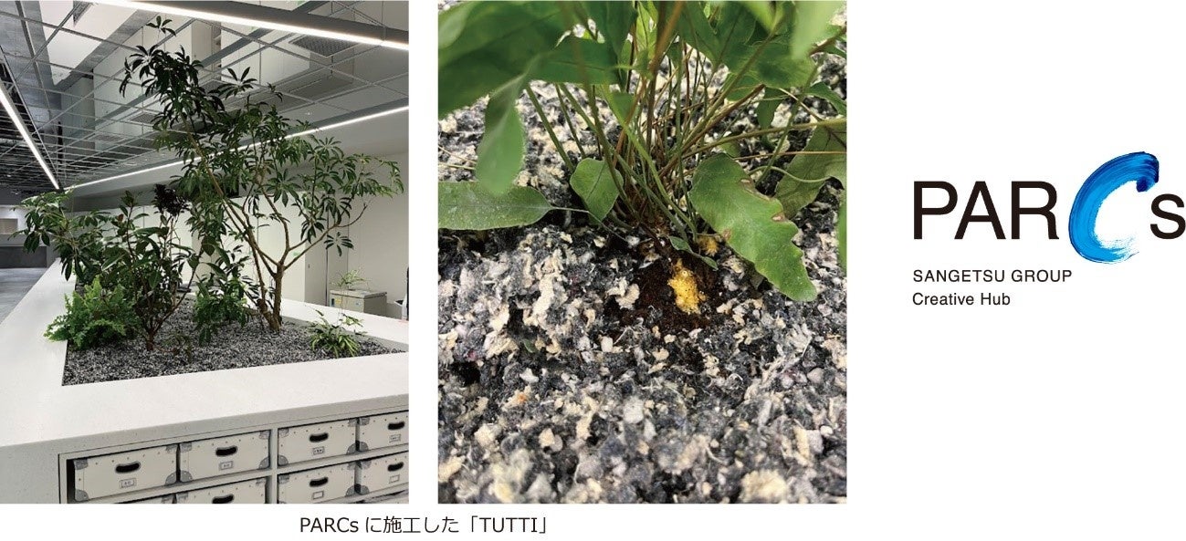 PLUS∞GREEN PROJECTは、これまでポリエステル繊維をリサイクルして生まれた土「TUTTI」を活用した様々な取り組みを進めてきました。このたび、サンゲツにプロジェクトについて共感いただき、3月4日(月)にオープンした新たな価値創造拠点「PARCs Sangetsu Group Creative Hub(以下、PARCs)」の植栽エリアに、TUTTIが採用されました。今回PARCsで採用されたTUTTIは、「サンゲツカーテン・エコプロジェクト」※により回収された、本来廃棄されるはずのポリエステル製のカーテン生地を原材料の約20%に使用しています。カーテン生地を使用したTUTTIの製造は初めてであり、廃棄物を活用し新たな価値ある製品に再生する、アップサイクルとしての可能性を持つ試みです。スタイレムはサンゲツとの取り組みを、プラスグリーンプロジェクトを通じて拡大していきます。