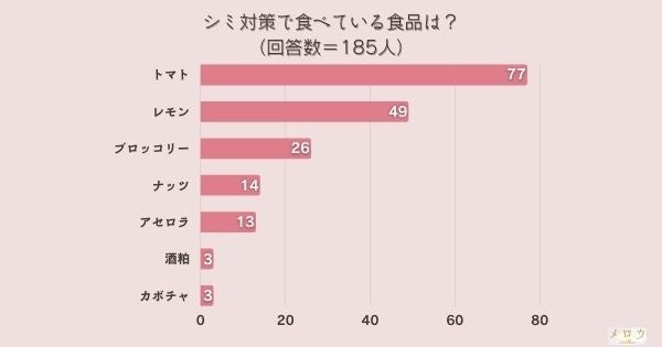 - 【総括】今回のアンケートでシミ対策で食べている食品1位は『トマト』でした