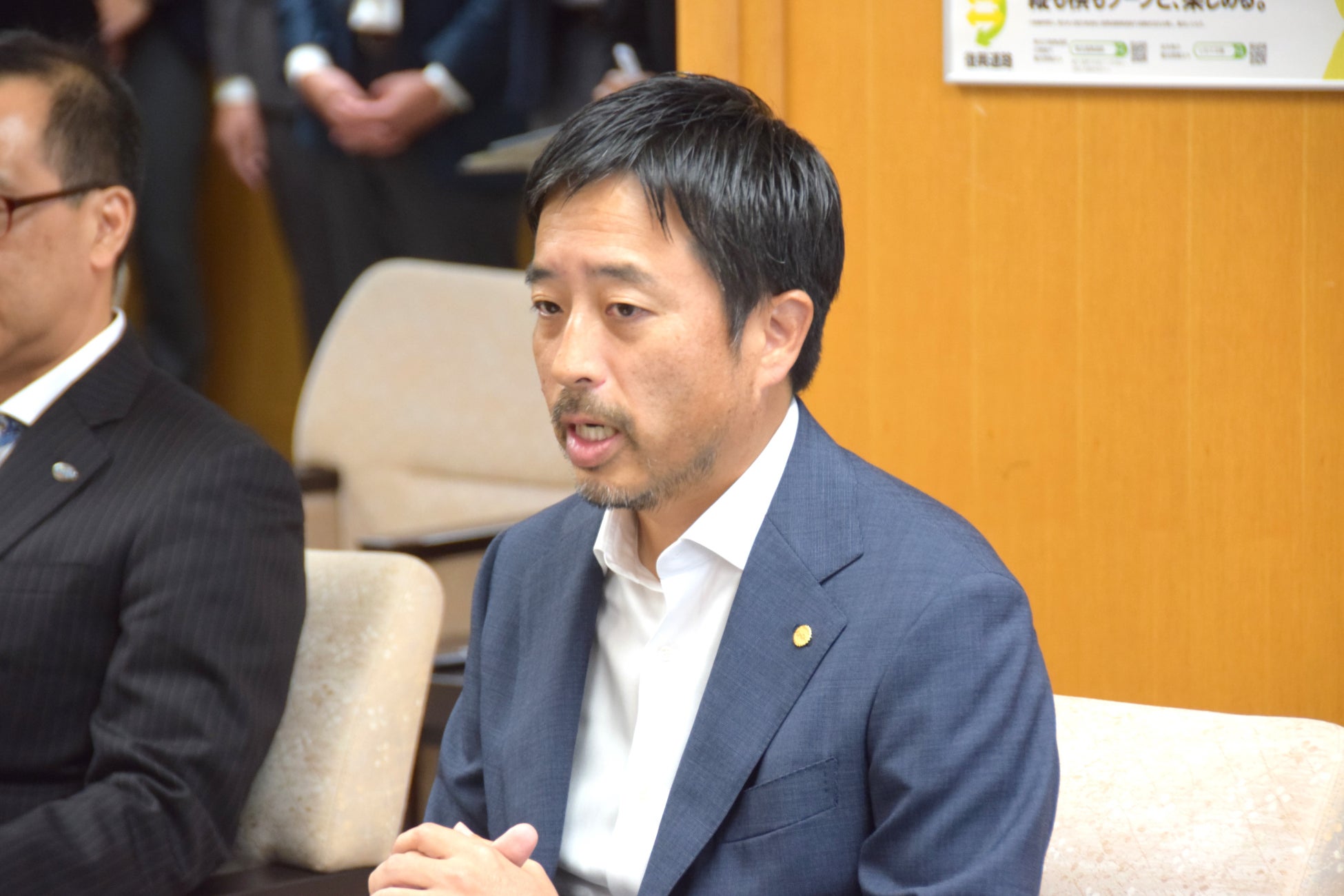 【出席者】 <岩手県> 知事 達増 拓也 様、県土整備部長 上澤 和哉 様、<マイヤ> 代表取締役社長 井原 良幸 様、<当社> 代表取締役社長 谷村 広和