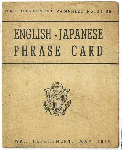 米軍将兵が日本兵に日本語で指示命令するための英和会話カード。三つ折り。1枚。アメリカ陸軍省 1945年5月28日発行。