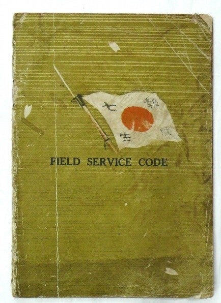 Field Service Code (Senzinkun). Adopted by the War Department on January 8, 1941, and translated into English by the Tokyo Gazette. Price: 30 Sen. (4), 21 pp. 181x127mm