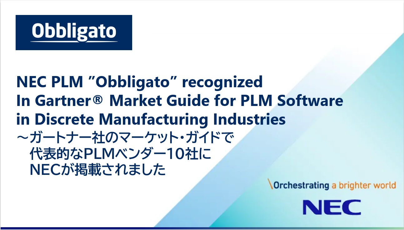 NECのPLMソフト「Obbligato」がGartner® Market Guide for PLM Software in Discrete Manufacturing Industriesに掲載