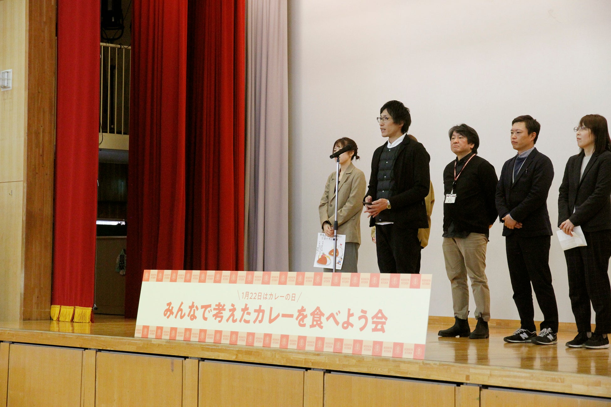 『1/22はカレーの日!みんなで考えたカレーを食べよう会』として、給食で全児童にレトルトカレーを提供