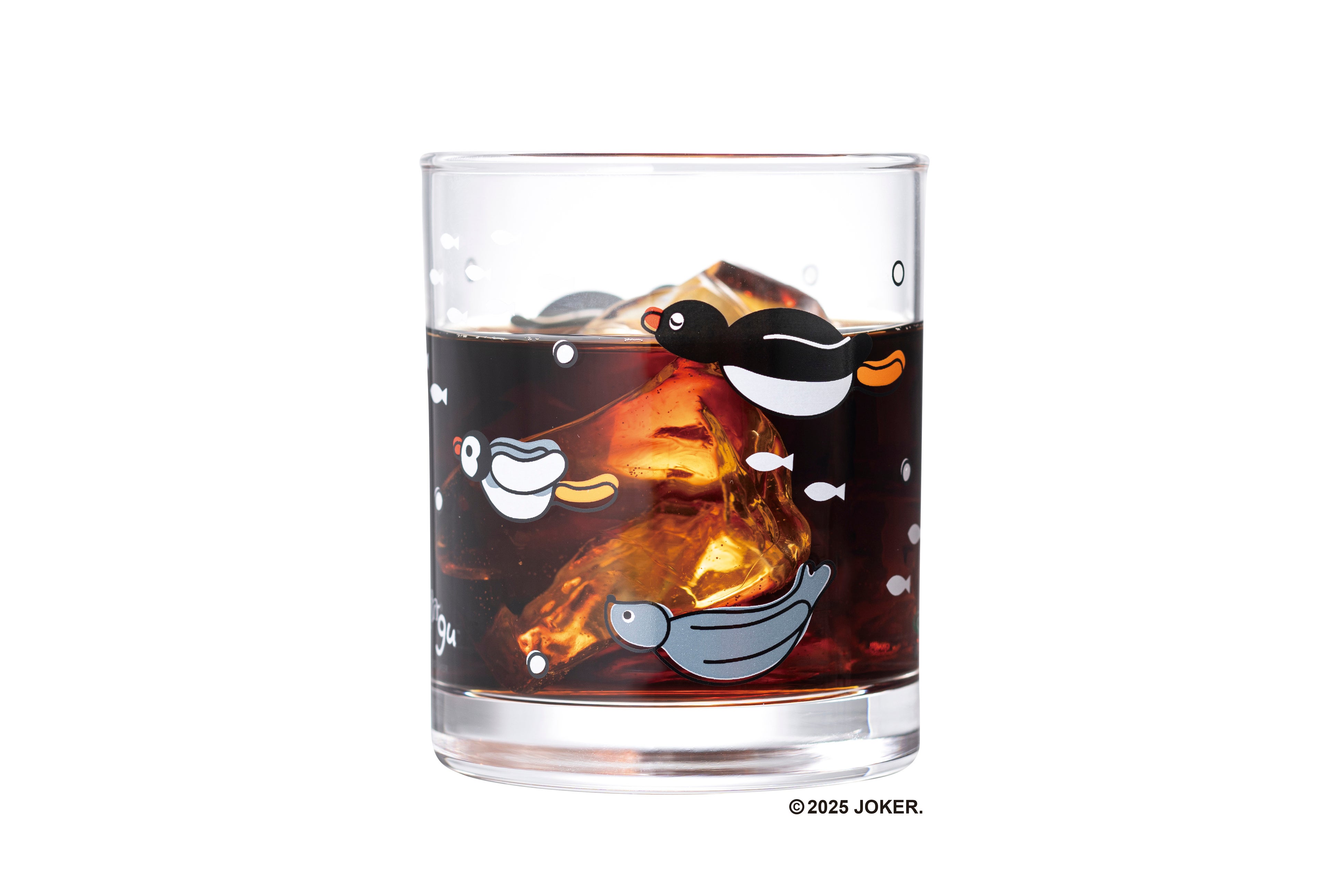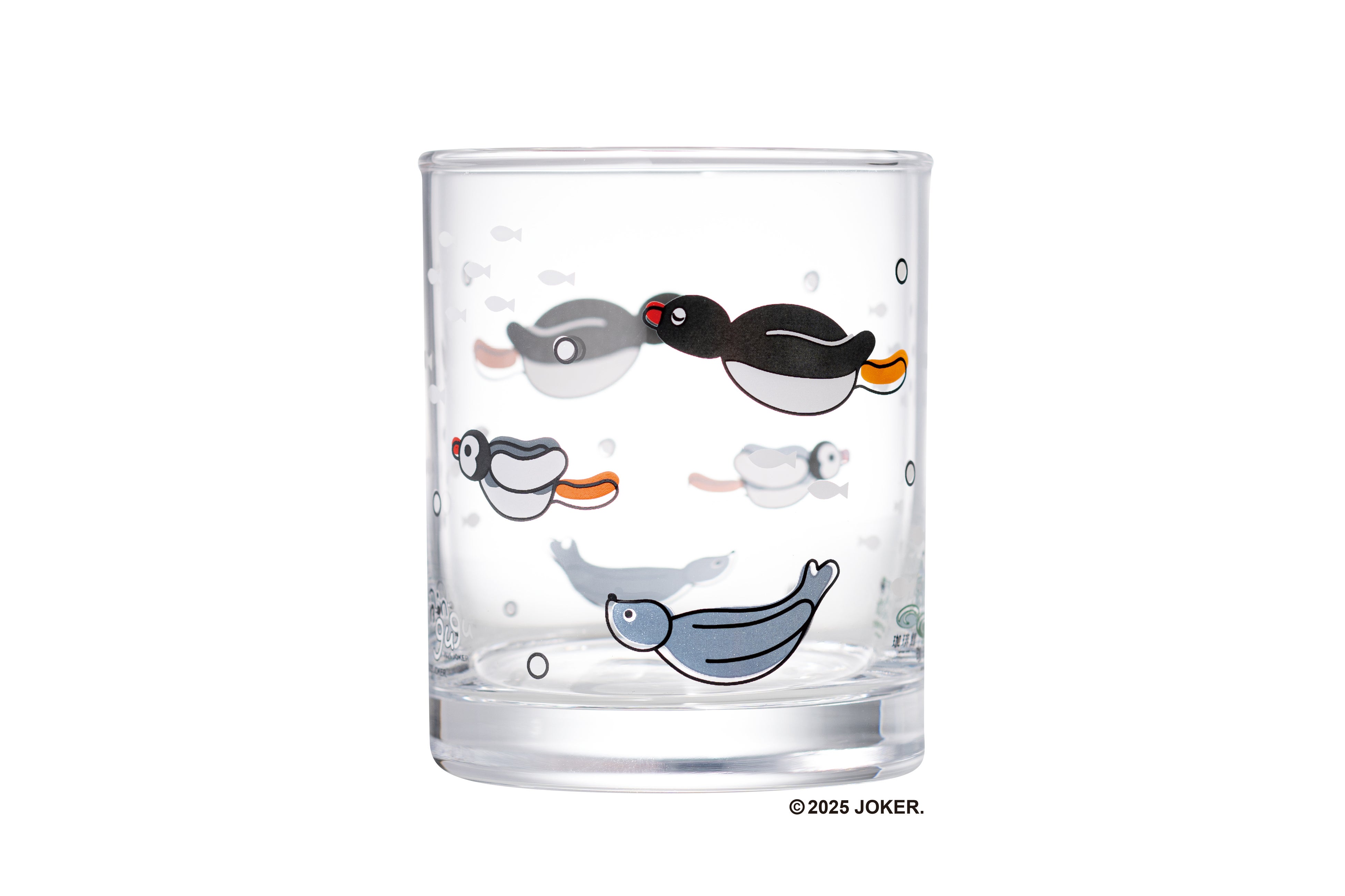 ・海を泳ぐピングー柄の涼しげな円柱型グラス、