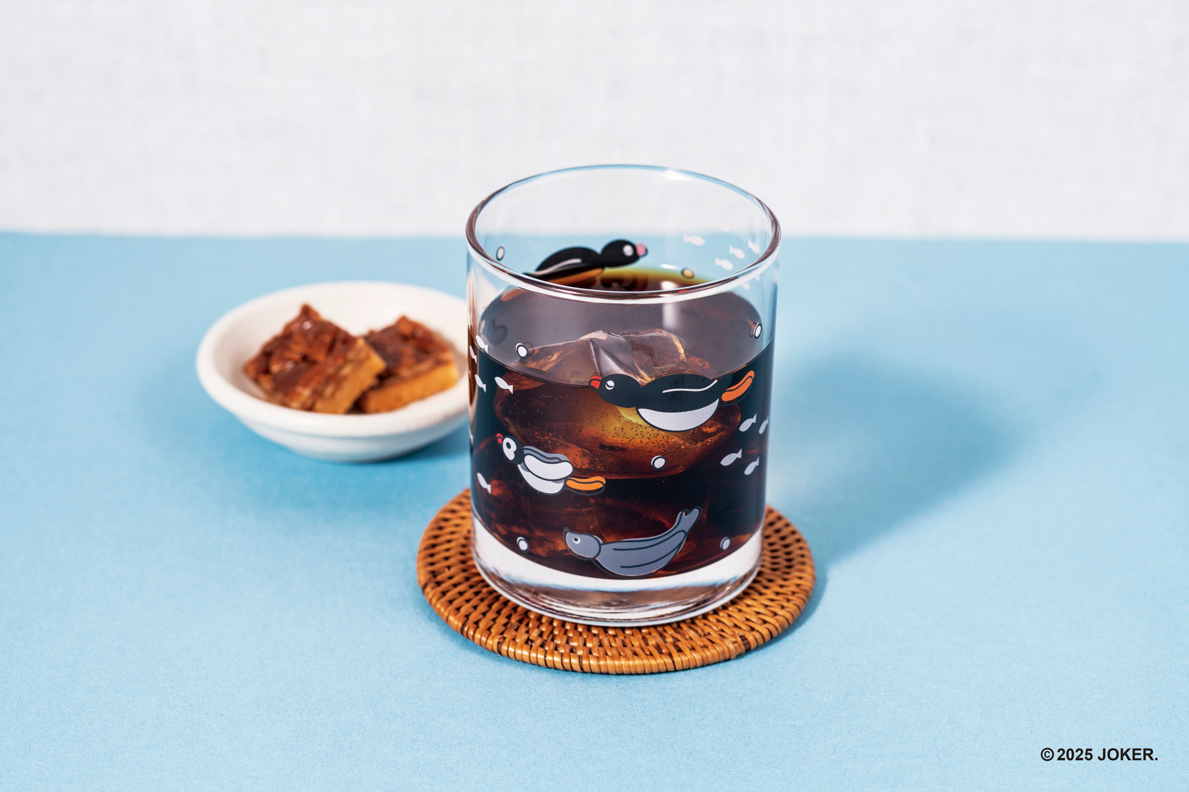「グラス」は、『珈琲館』で長年愛されている定番商品「炭火アイスコーヒー」のグラスをイメージした円柱形です。透明なグラスに飲み物を注ぐとピングーとピンガが泳いでいるように見える、夏にぴったりの涼しげなデザインに仕上げました。