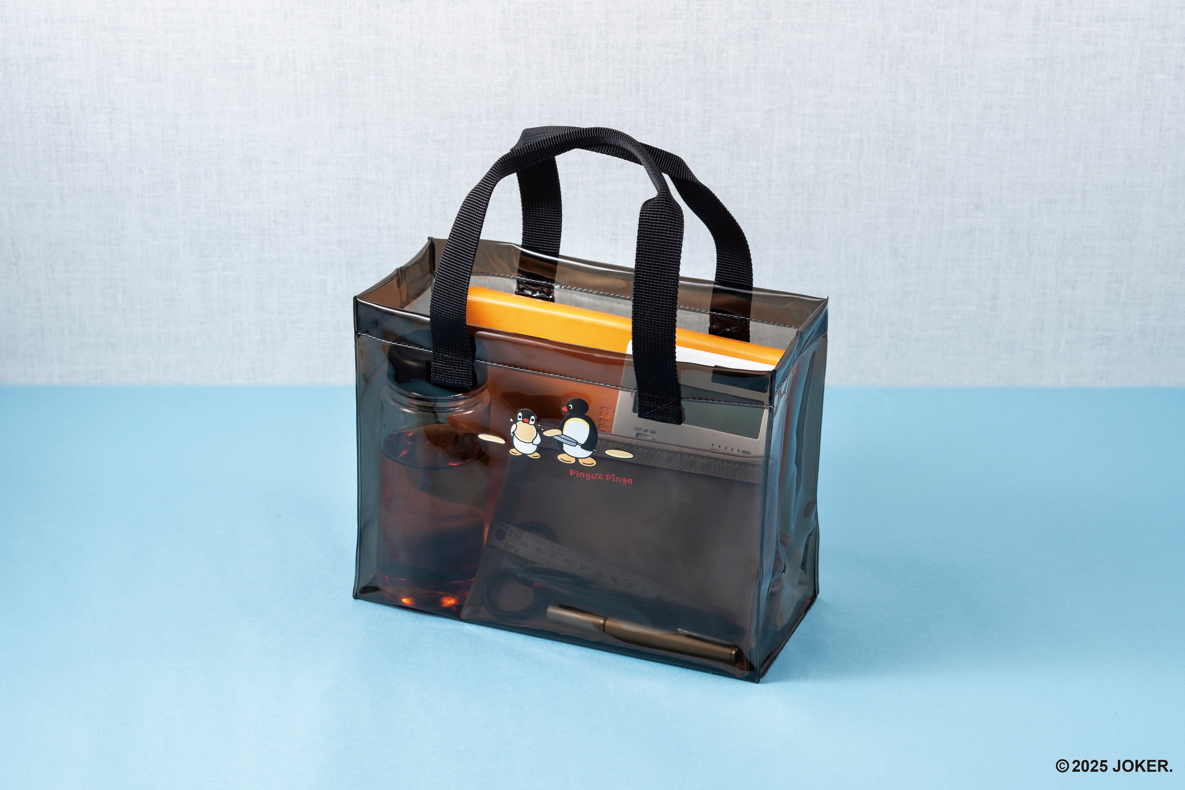 夏らしい「クリアバッグ」は、せっせとホットケーキを焼くピングーと、待ちきれずに隣で堂々とつまみ食いをするお茶目なピンガをデザイン。いたずらっ子なピンガを見つめる、なんとも言えないピングーの表情がキュートな、微笑ましい日常のワンシーンを描きました。