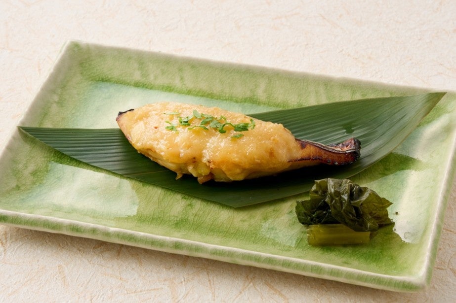旬の鰆を玉ねぎ味噌と共に風味良く焼き上げました。手前に添えた葉山葵の風味が、鰆の味噌焼きの優しい味わいを引き立てます。