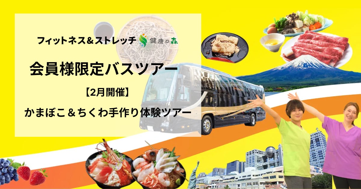 株式会社いーふらん(本社:神奈川県横浜市、代表取締役社長 鹿村大志、以下いーふらん)は、いーふらんが展開する「フィットネス&ストレッチ 健康の森」事業において、運動を通じた健康促進のみではなく、体験を通じたこころの充足、人と人とのつながりを「遊びながら」創出する会員限定バスツアーにおいて、2月は「かまぼこ&ちくわ手作り体験」ツアーを開催することをお知らせいたします。