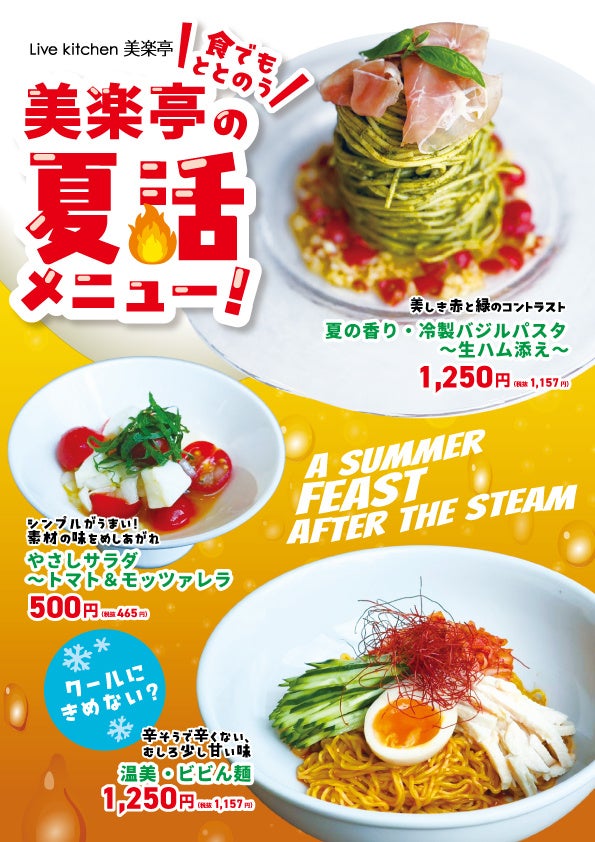 館内レストラン「美楽亭」にて、見た目も爽やかな夏限定メニューが登場。