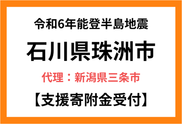 ●令和6年能登半島地震にて甚大な被害を受けた珠洲市に代わって、三条市がふるさと納税による支援受付を開始