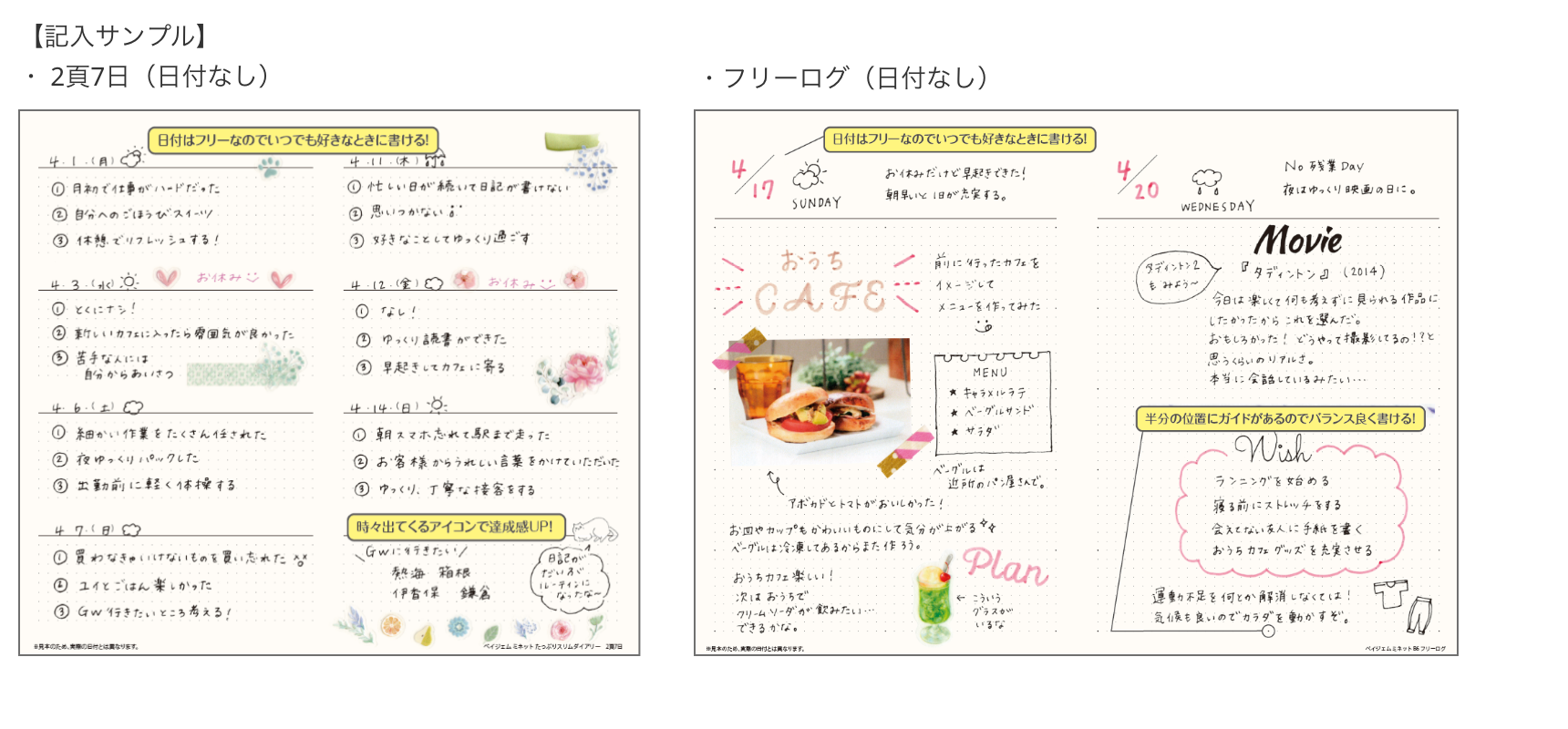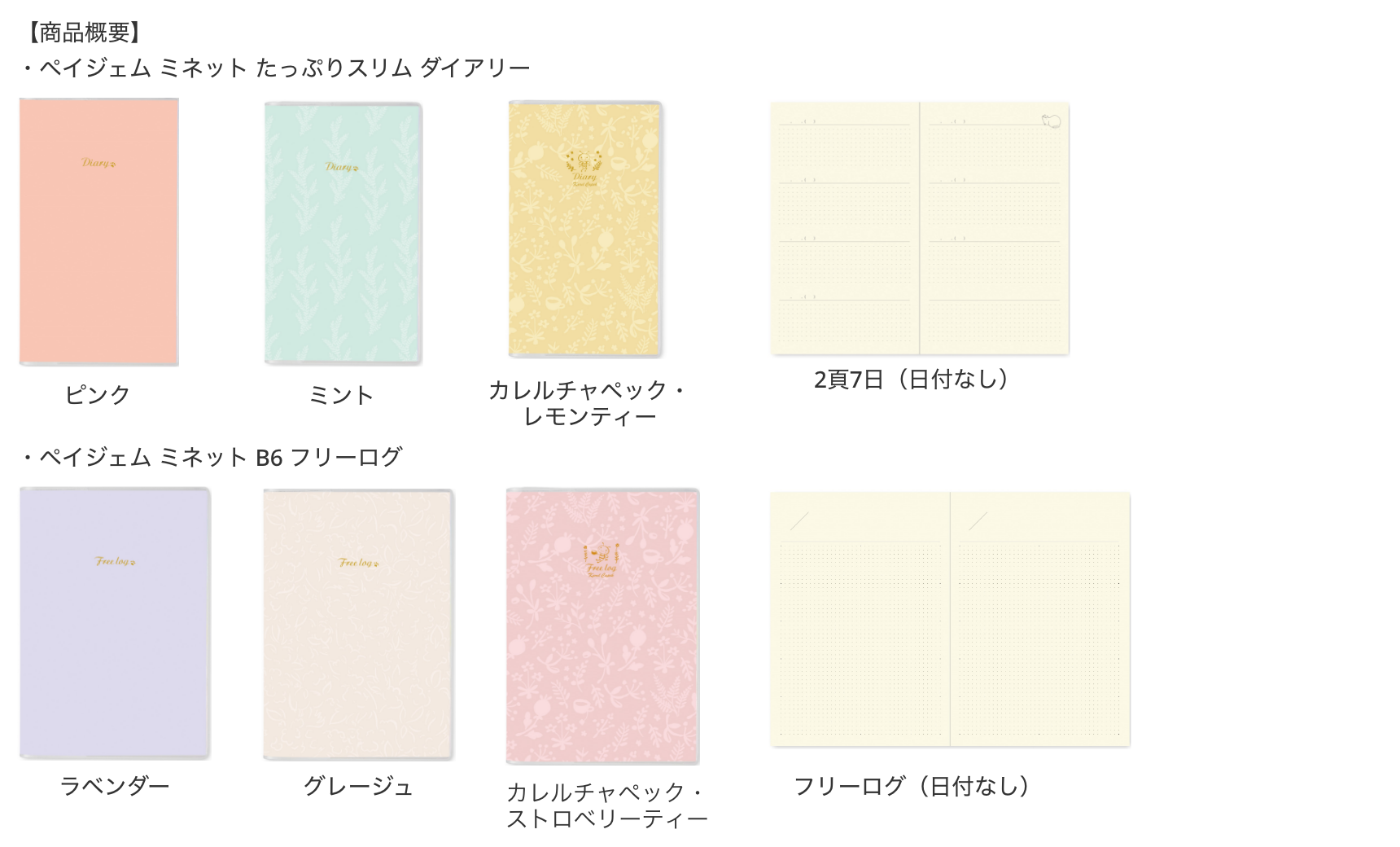 また、姉妹ブランド「PAGEM(ペイジェム)」からは、書き続けることが苦手な方でも気軽に日記を楽しめる、日付の入っていないフリーログタイプの新商品を含む全97アイテムを揃え、「NOLTY」「PAGEM」合わせて298アイテムを揃えています。