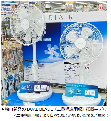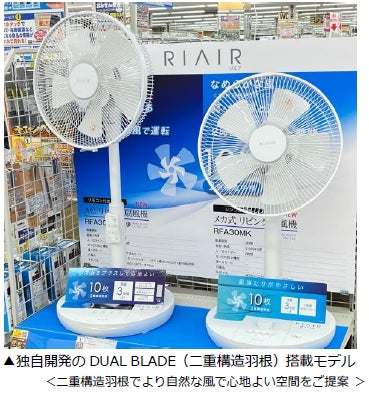 また、独自開発のデュアルブレード(二重構造羽根)搭載モデルの扇風機は、大きい羽根と小さい羽根の二重構造で、より自然に近い滑らかな風を優しく遠くまでお届けし、サーキュレーターのように空気循環用とする等、様々な用途でお使いいただけます。