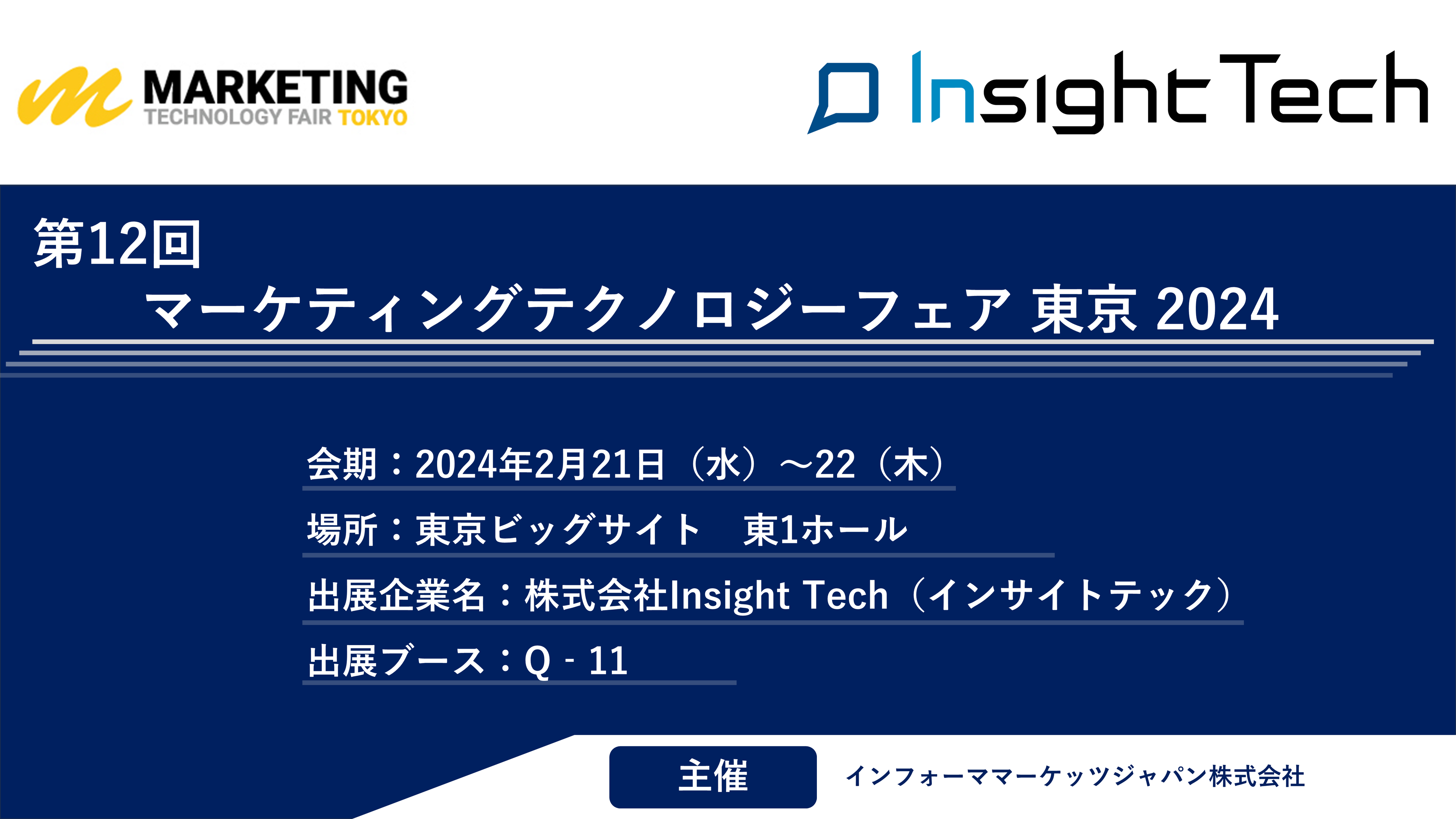 Insight Techは、企業のマーケティング活動にフォーカスした一大イベントである「マーケティング・テクノロジーフェア2024東京」にブース出展いたします。