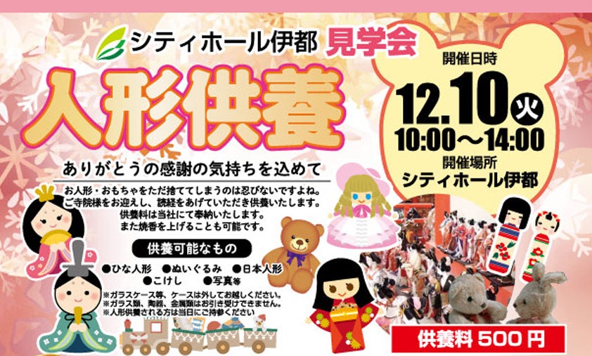 12月10日「ありがとうの感謝を込めて」人形供養&シティホール伊都見学会 開催のお知らせ